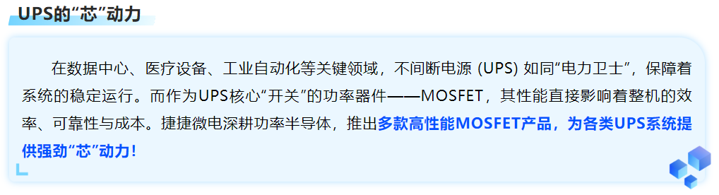Rdson)、耐压 (V_{DS})、电流能力 (ID) 等参数,直接决定了UPS的转换效率、输出能力、散热表现乃至整机体积和成本。
